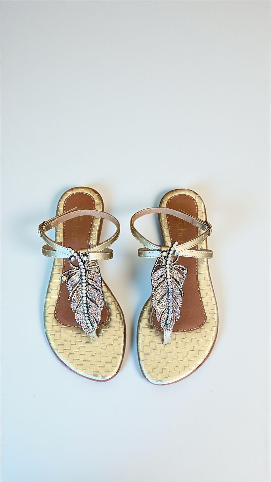 Rasteira bico redondo com palmilha em napa trama, cabedal feito de pena de strass!